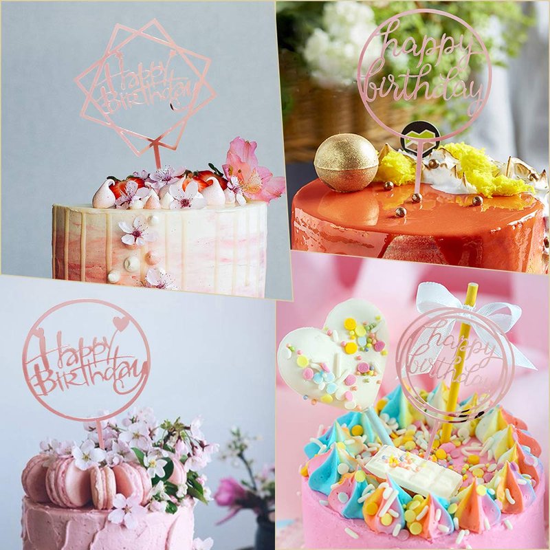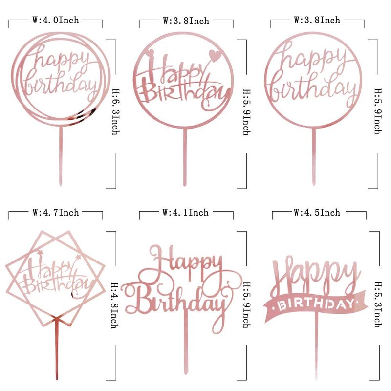 - Package Includes: You will receive 6 rose golden happy birthday cake toppers, The cake topper has a blue and transparent protective film on it, and when you tear them off from both sides, the topper will be more shiny.