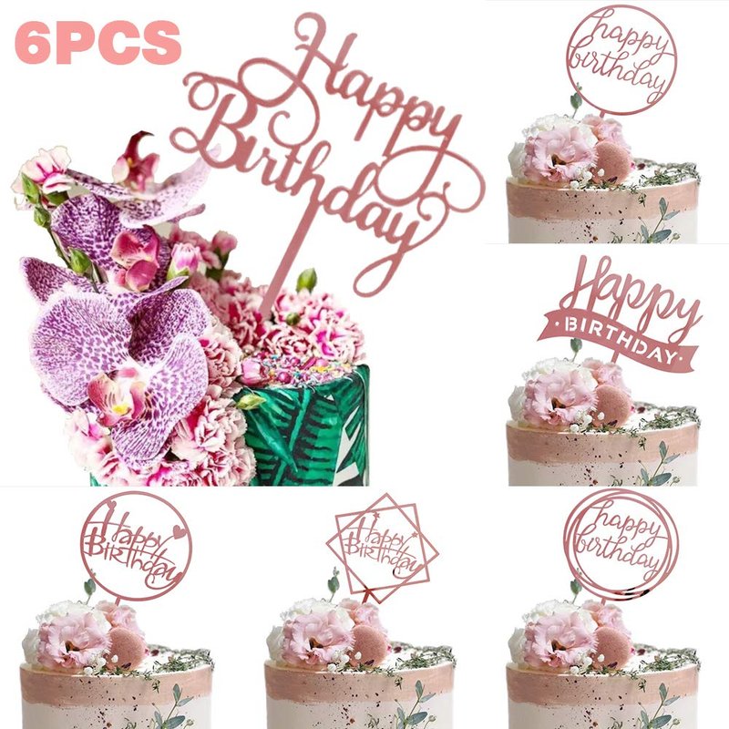 6PCS Rose Gold Happy Birthday Cake Topper Acrylic, Birthday Party Decorations,Birthday Cake Decor,Birthday Cake Decorations Supplies.