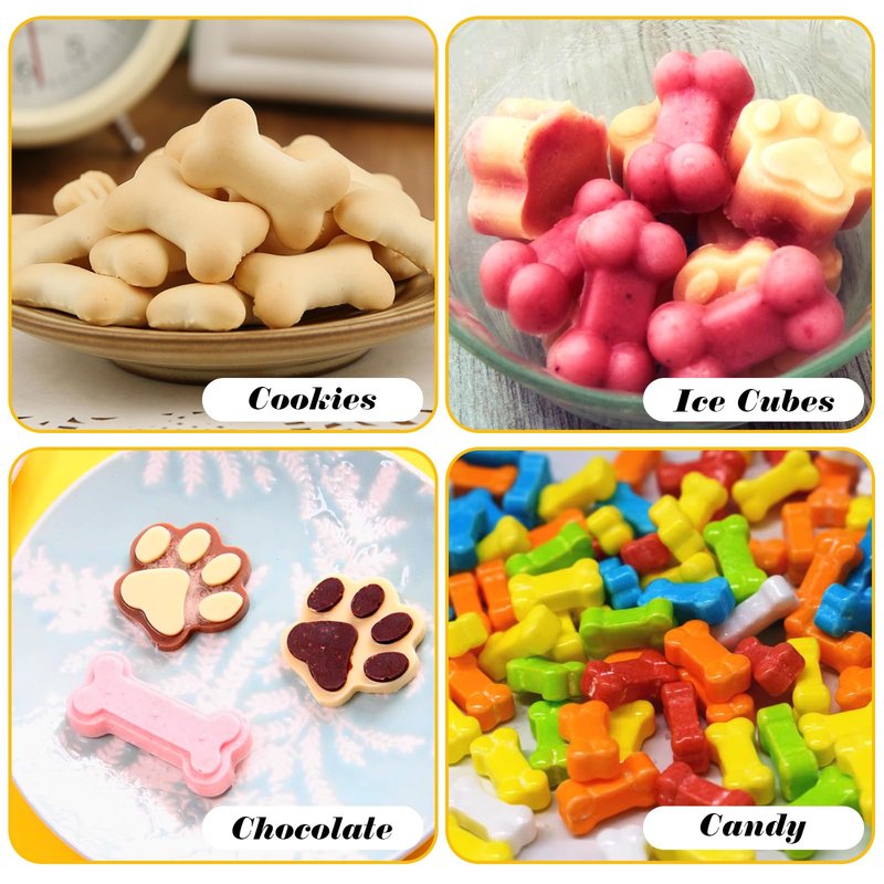 - MULTI-FUNCTIONAL USE - Silicone Molds can be used for making Chocolate, Candy, Pudding, Jelly, Ice Cube, Biscuits etc. The shapes of cat paws and bones are very cute. Make healthy snacks with children and pets. There are two shapes of mold that can make many products at once. Dog Treat Molds can make treats for your pet as well.