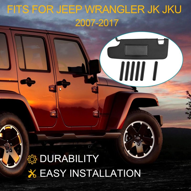 - Fit: Sun Visor Repair Kit Fit for Jeep Wrangler JK JKU 2007-2017 Driver and Passenger Side Car Sun Visor.