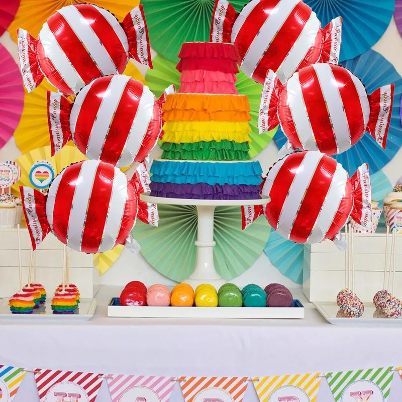 - Package Includes:The set includes six red candy balloons, It will be the most popular gifts/toys that kids receive at the candy theme party