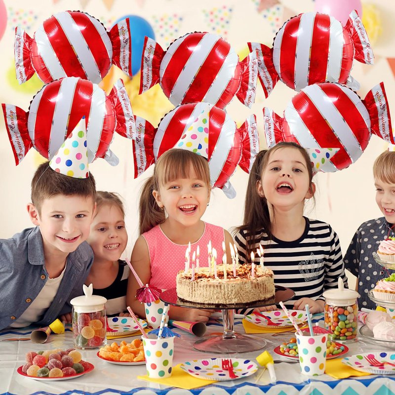 6pcs Sweet Candy Balloons Red Candy Foil Balloons for Candyland Children's Birthday Party Decorations