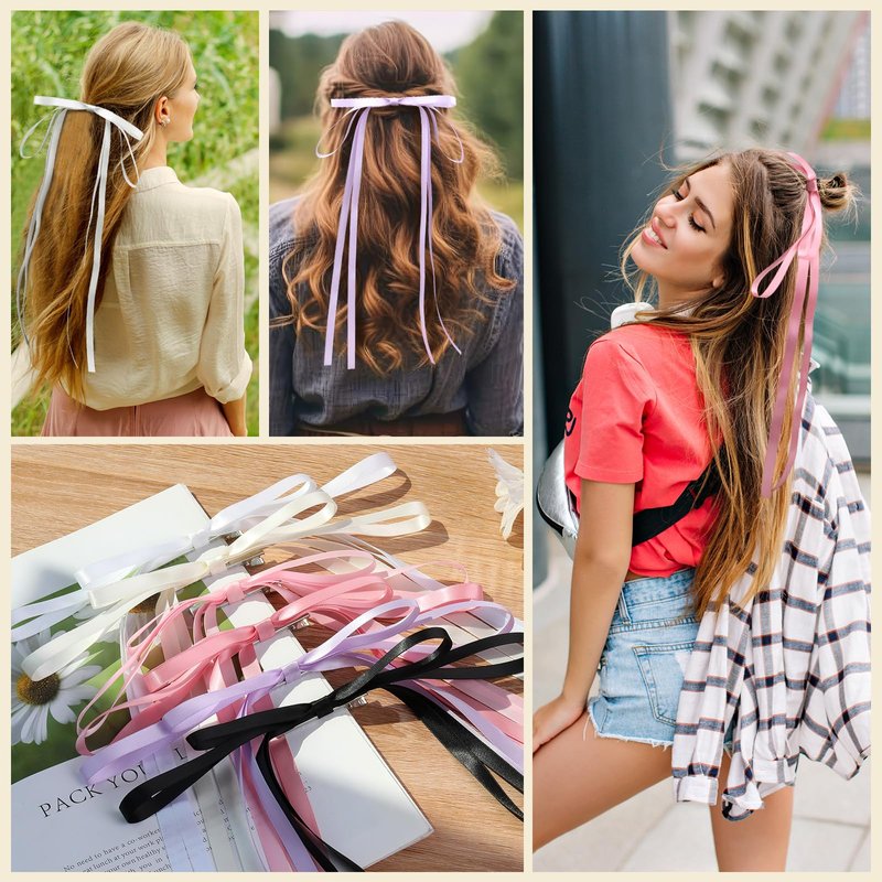 - Elegant Hair Clip: The hair ribbon clip is made of premium quality metal clip and soft silk material with a long tail. The metal clip is durable, not easy to rust, and can hold the hair firmly without hurting the hair. Silk material is soft and smooth, feel comfortable, not easy to fade and tear, no obvious creases.