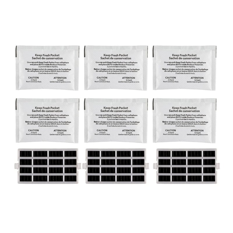 - Package includes 3packs W10311524 Air Filter (total 6pcs) and 3packs W10346771A Produce Preserver