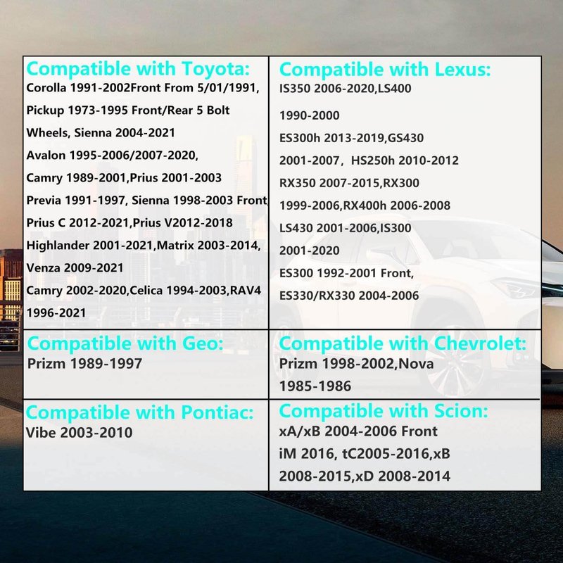 - Compatible: These wheel studs is designed for a wide range of vehicles, including Chevrolet, Lexus, Toyota, Scion, and Pontiac, ensuring versatility and compatibility.