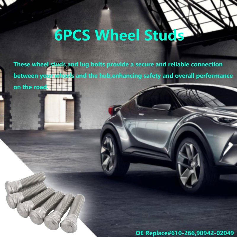 6PCS Wheel Studs,49mm Long & M12x1.5 Steel Lug Bolts, Wheel Lug Stud Car Accessories Compatible with Chevrolet Lexus Toyota Scion Pontiac Replace#610-266 90942-02049