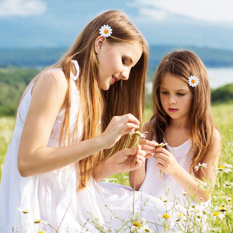 6Pcs White Daisy Hair Clip Penta Angel Small Fabric Sun Flower Hair Clip Wedding Bride Hair Barrette Pin Accessory for Women Girls Summer Beach Party Metal Buckle Decorate Clips and Barrettes