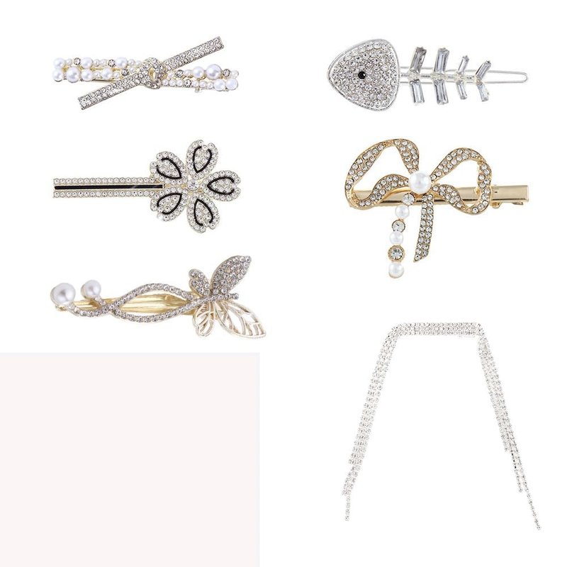 - Rich in style: 6 different styles of rhinestone hair clips, studded with shiny rhinestones or elegant pearls, and long chain pendant designs to add more appeal to your hairstyle.