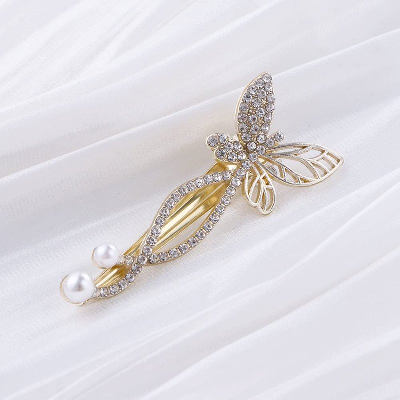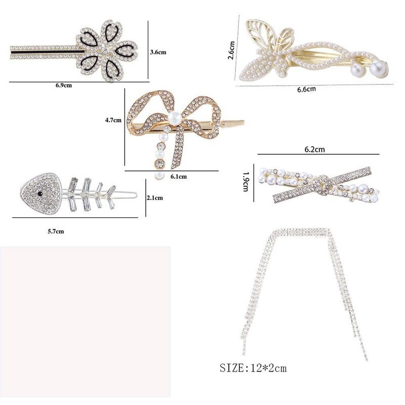 6pcs/Set Rhinestone Hair Side Clips,Pearl Rhinestone Bangs Clip Shiny Chain Tassel Hair Clip Elegant Bow Butterfly Hair Barrette for Women Girls