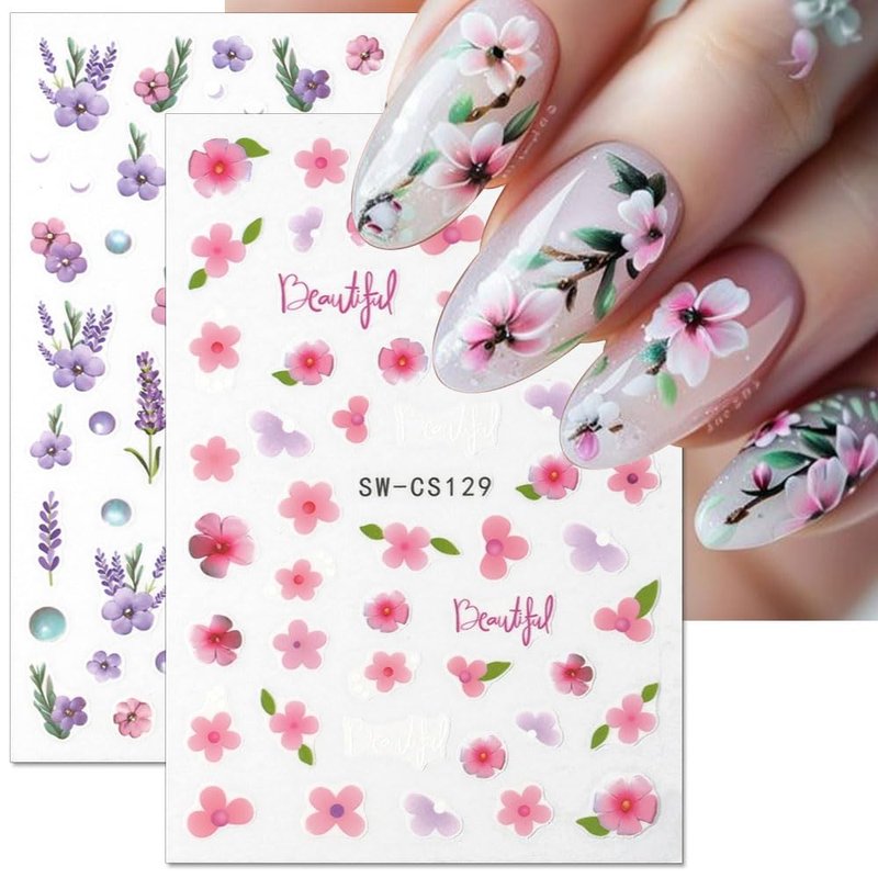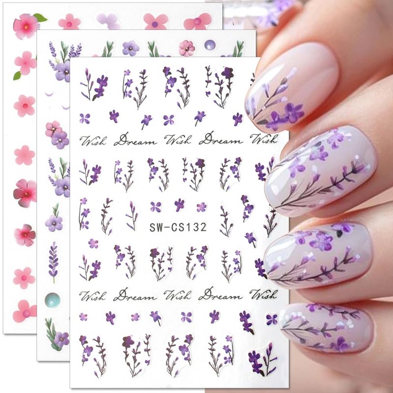 - 【Spring Summer Flower Nail Stickers】You will get 6 sheets nail design kit of pink purple flower nail decals,total 6 sheets nail design pink purple floral nail stickers and butterfly nail stickers,a variety colorful of 3d flowers elements for you,Satisfy your rich imagination of nail DIY and create your own spring nail art design.