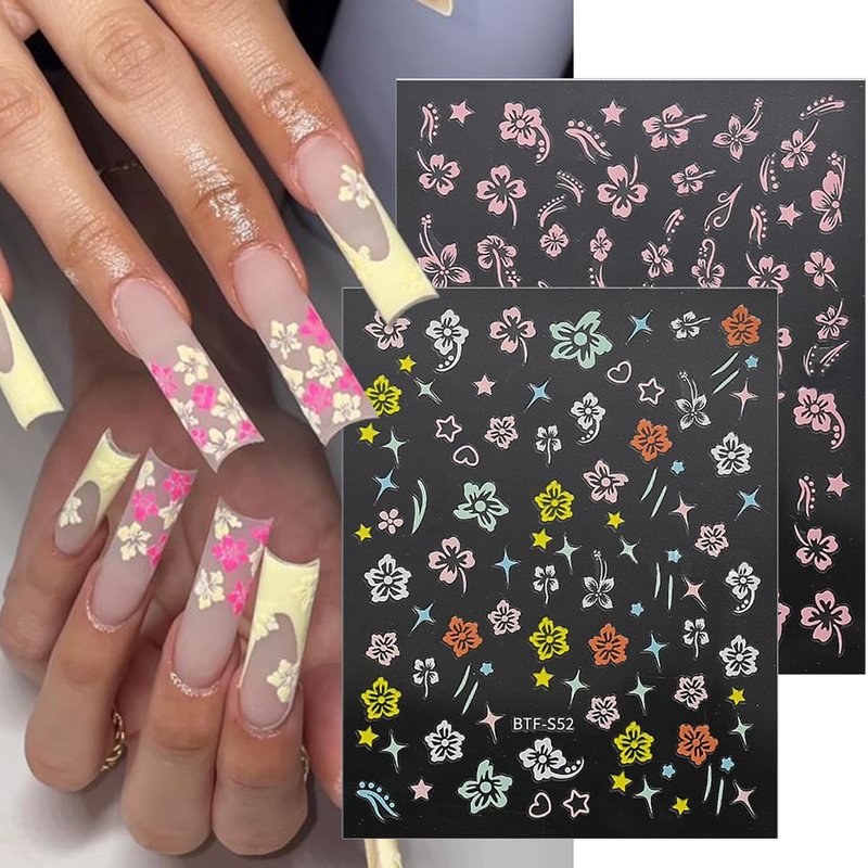 - 🌸Fashion Flowers Stickers Set :You will get 6 sheets spring summer theme hibiscus flower nail art stickers ,colorful flower nail designs stickers decals are the perfect fashion accessories.Large number of different patterns for you to use and replace in daily life,flower nail decals are full of sensuality and elegance, Various charming patterns bring you a different mood.