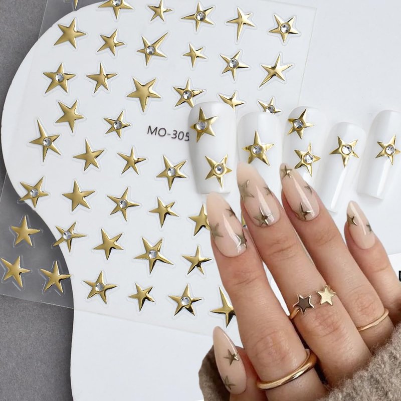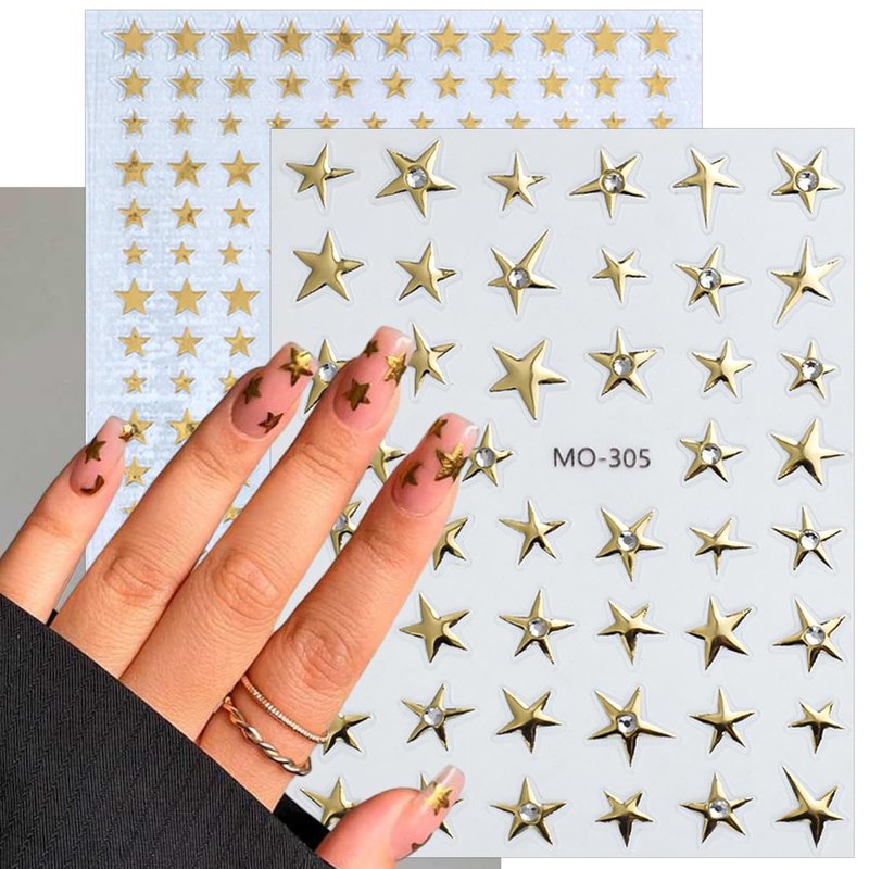 - 【Metallic Star Nail Art Stickers Set】You will get 6 sheets star art stickers are the perfect fashion accessories.Large number of different patterns for you to use and replace in daily life, nail decals are full of sensuality and elegance, Various charming patterns bring you a different mood.