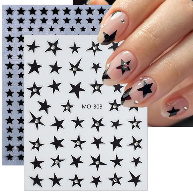 - 【DIY Nail Art Design】3D black silver gold star self-adhesive nail design stickers is simple and quick to use, nail decals work great on bare nails, they will stay on for a long time and will not peel off your nails, enjoy the feeling of nail art.