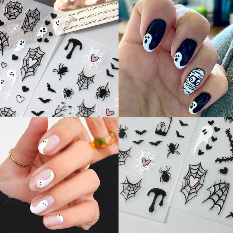 5. Put heart spider web little ghost nail sticker on to nail surface.