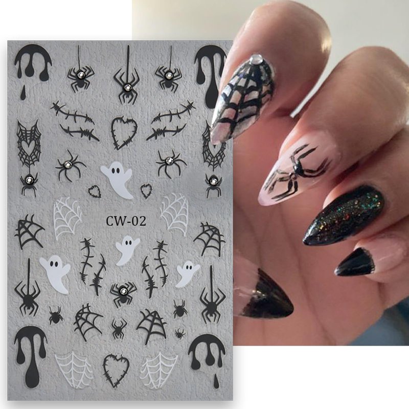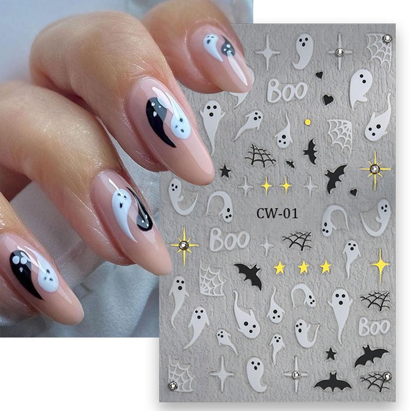 Black White Halloween Ghost Nail Stickers Sparkling Nail Art Decals 5D Luxury Nail Art Supplies for Women DIY Acrylic Nails Decorations