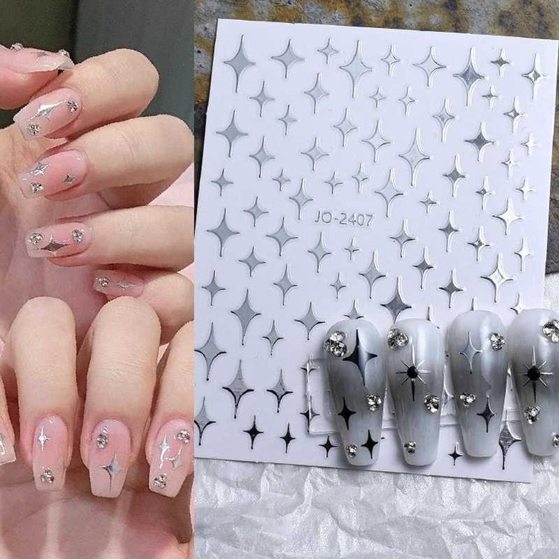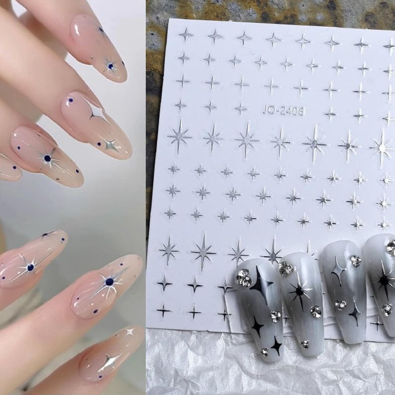 - Package Contents: 6 sheets silver star nail stickers.many patterns combinations, which can offer you multiple choices, satisfy your rich imagination of nail DIY and create your own style.