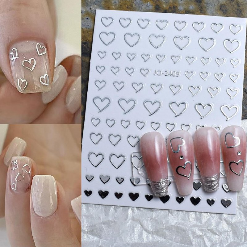 Fashion 3D Nail Art Stickers French Love Image Silver Star Heart Transfer Stickers for Nail Self-adhesive Slider Foil Nail Decal for Women Tip Manicure Decorations