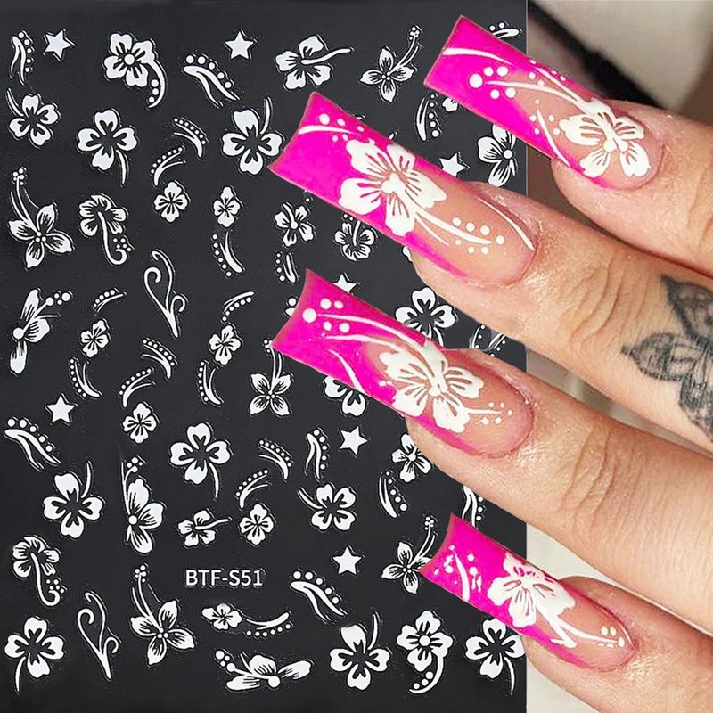 - Easy to use: Hibiscus Self-adhesive nail decals, you can follow the instructions to decorate your own style nails, Ideal for natural or acrylic nails. home use and nail salon.