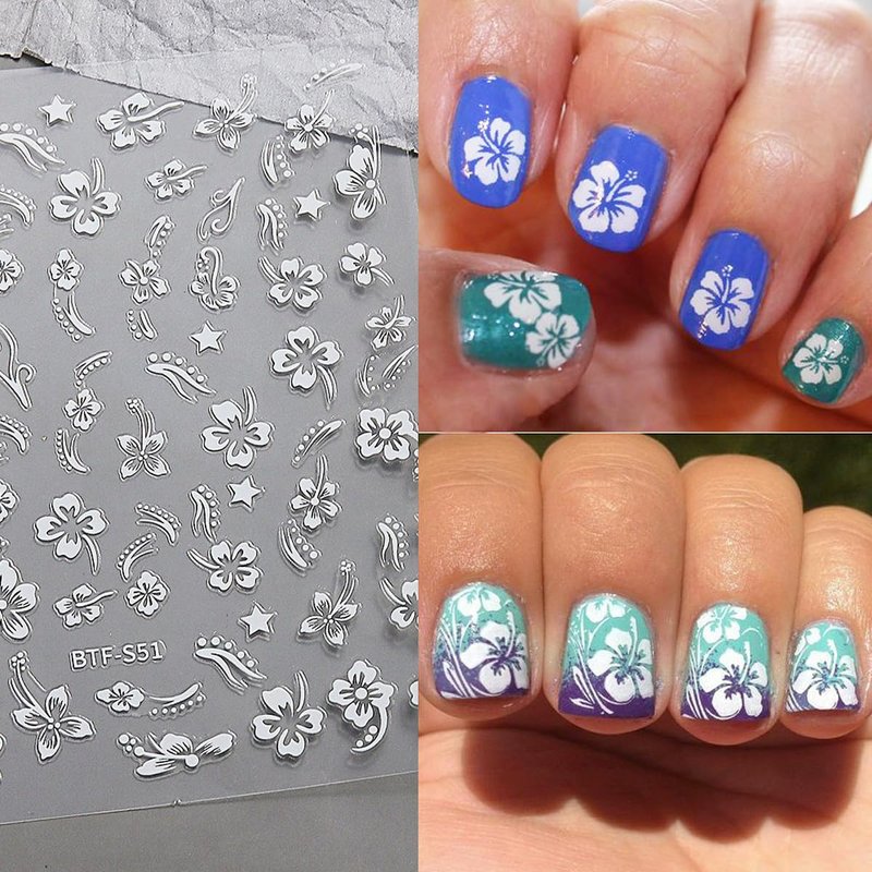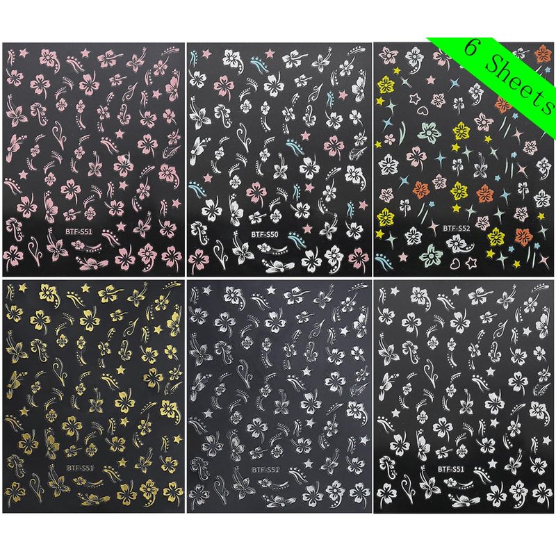- Flowers Sticker for Nail Art: You will get 6 sheets 3d Hibiscus flower nail art stickers decals, spring flower nail designs decoration, It provides you with a variety of options to give full play to your rich imagination of nail DIY.