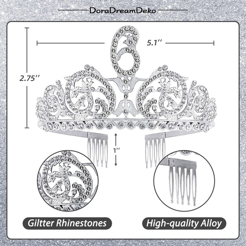 - 6th Birthday Tiara: A rhinestone 6th birthday crown with the comb, can be well fixed to the hair. 6th bday party crown fits 6 years old girl's birthday gift. 6th bday girl decorations tiara, 6th birthday party tiara for kids can match any 6 birthday dress or shirt for girls and 6 birthday outfit for girls. The 6 birthday tiara for her is perfect for 6 birthday party. We believe that these 6th birthday gift ideas will be liked by girl's 6th birthday