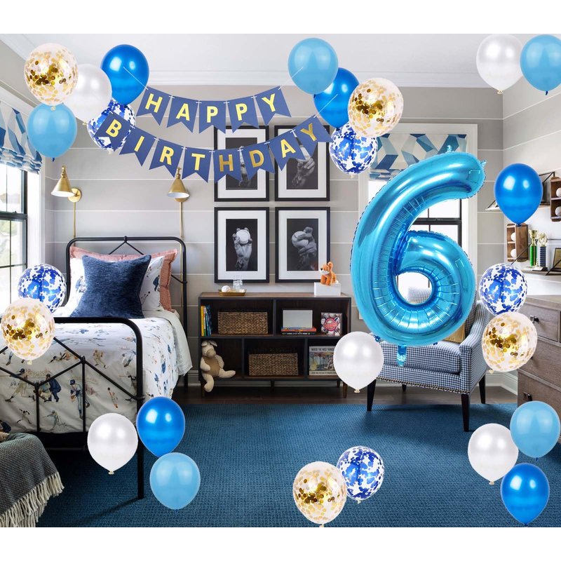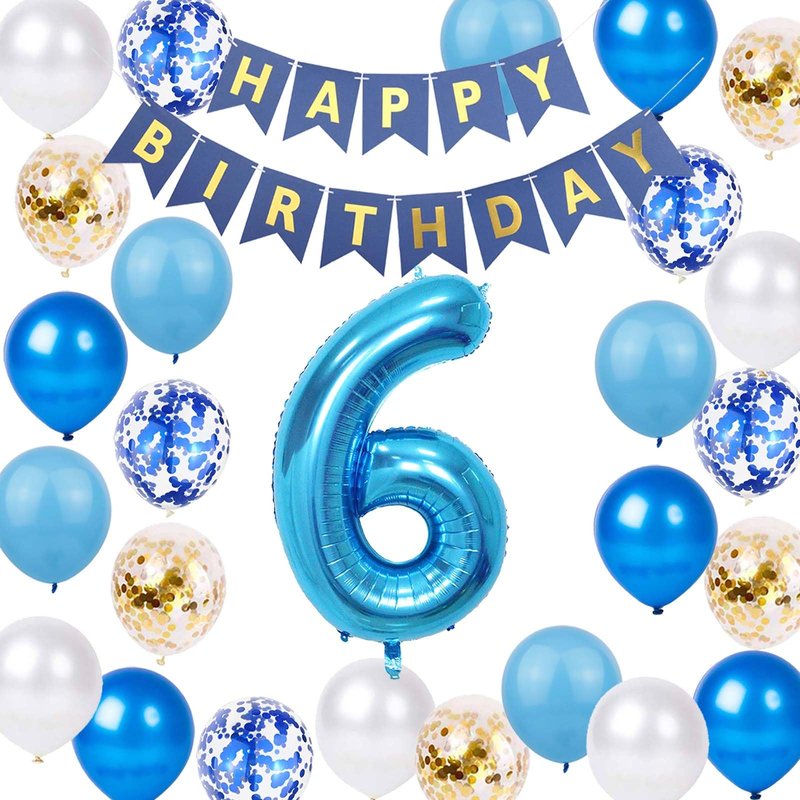 - Package included: 1 * Blue gold 'HAPPY BIRTHDAY' Letter Banner, 1* Jumbo number foil balloons, 25 latex party balloons in 5 colors(5* blue, 5* deep blue, 5* white, 5* blue, 5* blue confetti,5*gold confetti ), 1* 10m ribbon. Total 29packs in one package.