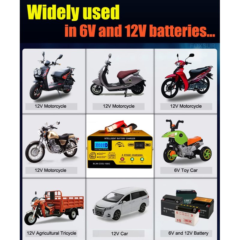 - 【15 Amp Car Battery Charger 6V/12V】15A battery charger is charging faster than some 1A, 2A, or 6A chargers in the market. It's not only a battery charger, trickle charger, float charger, battery desulfator, also an advanced battery maintainer,Cargador de batería 6V 12V. It will charge and maintain for cars, trucks, RV, SUV, Motorcycles, tricycles,lawn mowers,marine,motorboats, golf cart, 6V toy cars, snowmobiles,etc.
