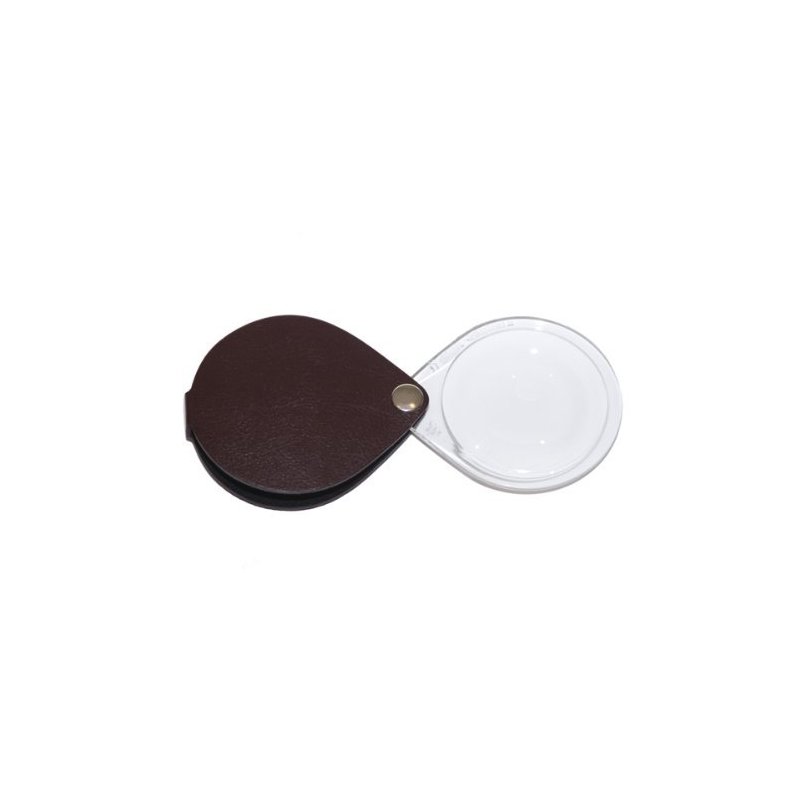 From the Classic Collection, this leather folding pocket magnifier is functional and stylish. Features: Magnification: 6X Diopter: 21D Lens Size: 1 inches Lens Type: Biconvex Case: Built-In Case Material: Strong Leather Lens Material: PXM Plastic with Duplex Coating Color: Burgandy Red, Teardrop Weight: .8 oz #1740130