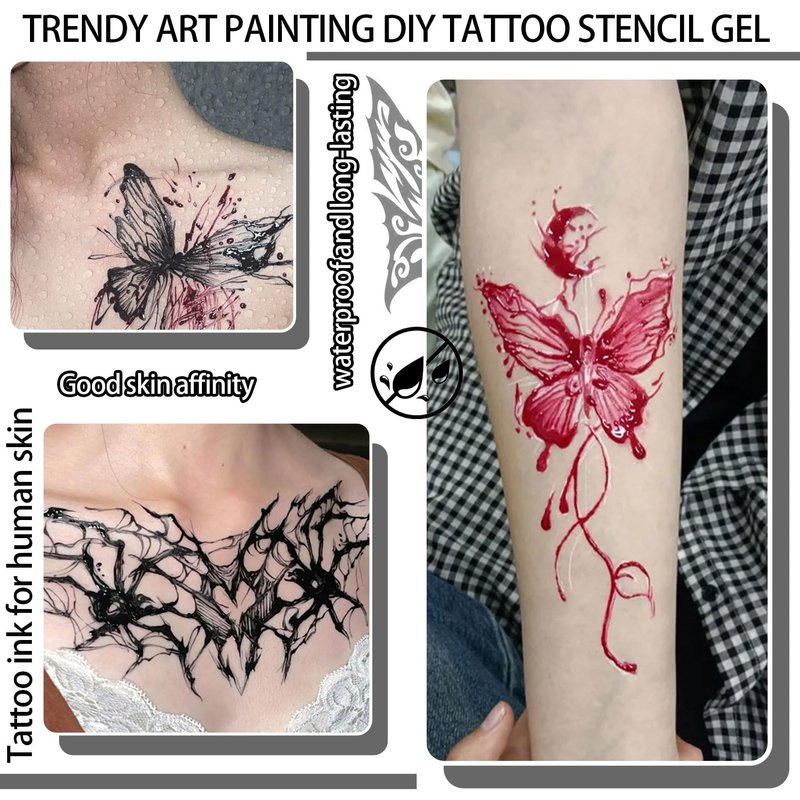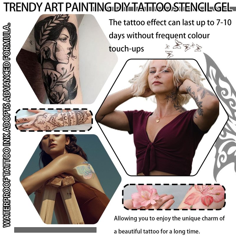 - 🌈【Scope of Application】DIY tattoo stencil gel is perfect for all parts of the body,whether it's the arms,back,legs or any other area.It is perfect for everyday decoration or for special occasions to show your personality.