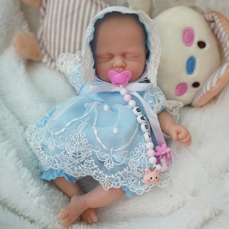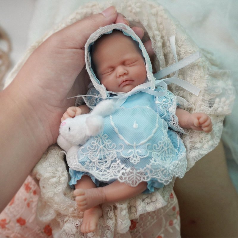 - 【Features】This is a mini reborn baby doll, anatomically correct girl. Size: 7 inch from head to toe, weighs 8.8 OZs, palm-sized, mini and portable; Eyes: can't blink; Washable, easy to care and maintain.