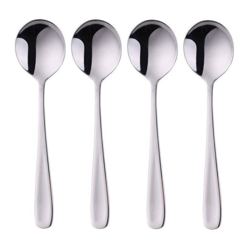 7-Inch Soup Spoons, Baikai Bouillon Spoon,18/10 Stainless Steel Finished Table Dinner Spoons Set of 4 (Silver)