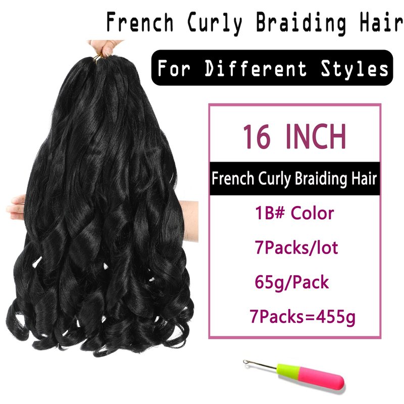 7 Pack French Curly Braiding Hair-16Inch Pre Stretched Braiding Hair Omber Braiding Hair Loose Wavy Pre Streched Braiding Hair Crochet Box Braids Hair for Black Women (1B#)