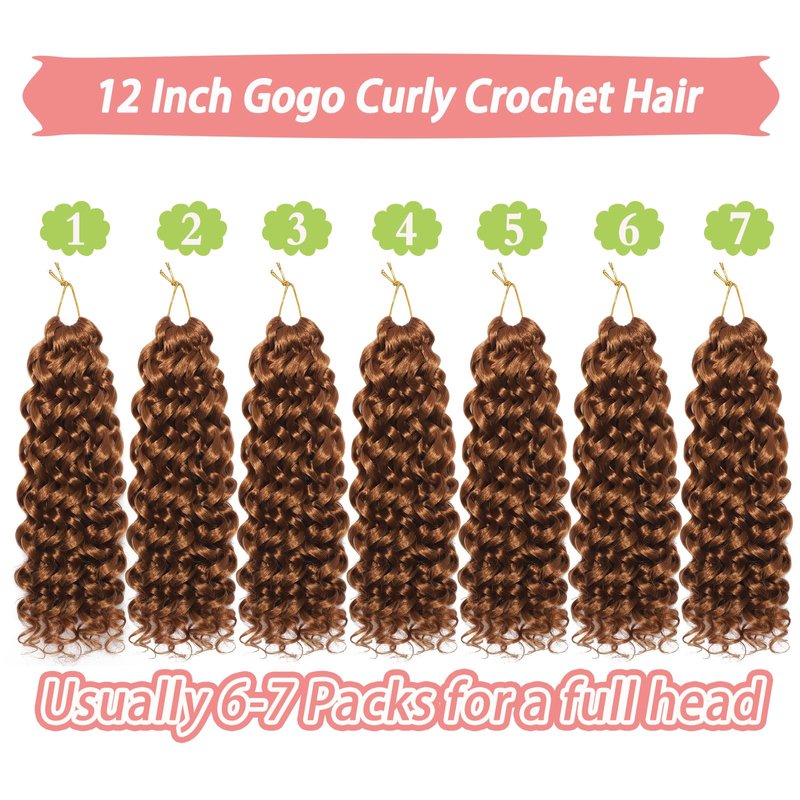 Gogo Curl Crochet Hair 12 Inch 7 Packs Short BoB Curly Crochet Hair for Women Natural Black Ocean Wave Crochet Hair Water Wave Curl Deep Twist Braiding Hair Extensions Get the great beach wave look with GoGo Curl Crochet Hair 12 Inch. Made of high quality low temperature synthetic fiber, this crochet hair is natural, soft, and long-lasting. Perfect for any occasion, this versatile hair can be used for birthdays or everyday wear. Each pack comes with 8 bundles of beach curl crochet hair.