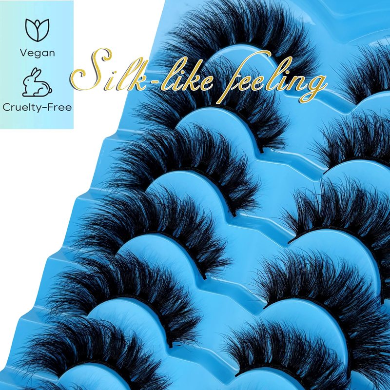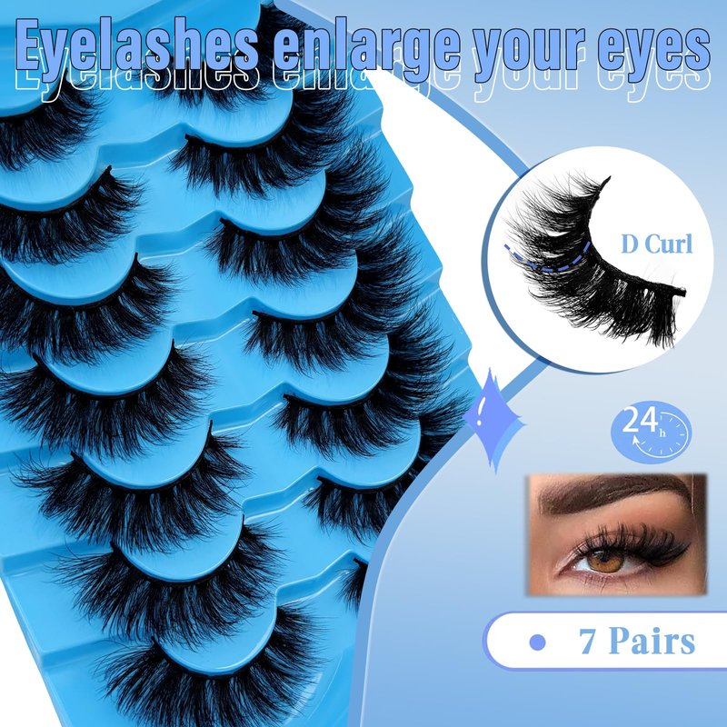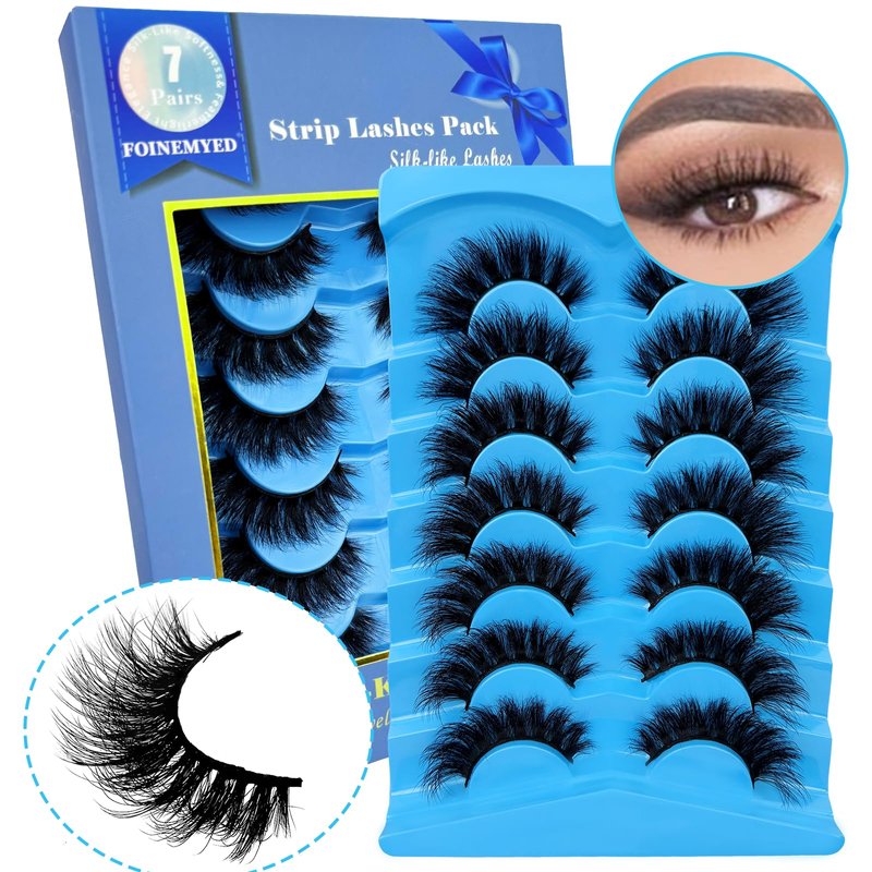 7 Pairs Faux Mink Lashes Full Volume Strip Lashes Mink Lashes Fluffy False Eyelashes Wispy Lashes Multipack 6D Volume Fake Eyelashes by FOINEMYED