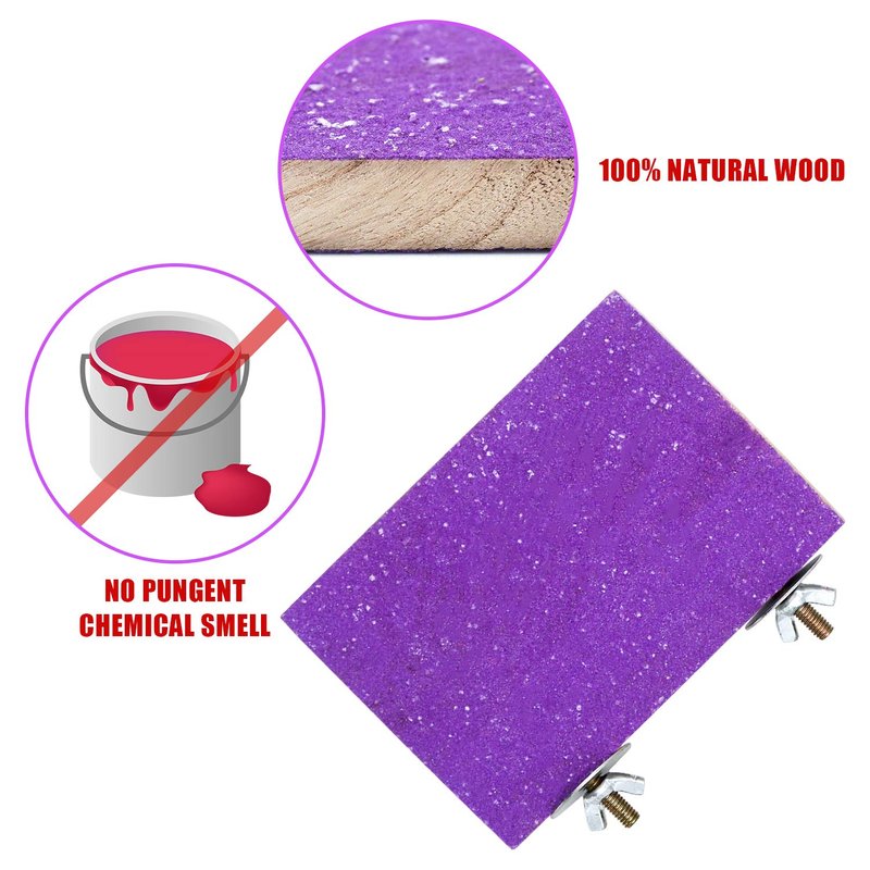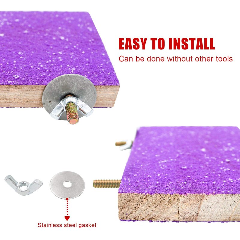 - Material - All the bird perch stand toys are made of 100% nature wood with quartz sand, edible coloring, food-grade safety and environmentally friendly. Screw and spacer with food grade 304 stainless steel, durable for use.