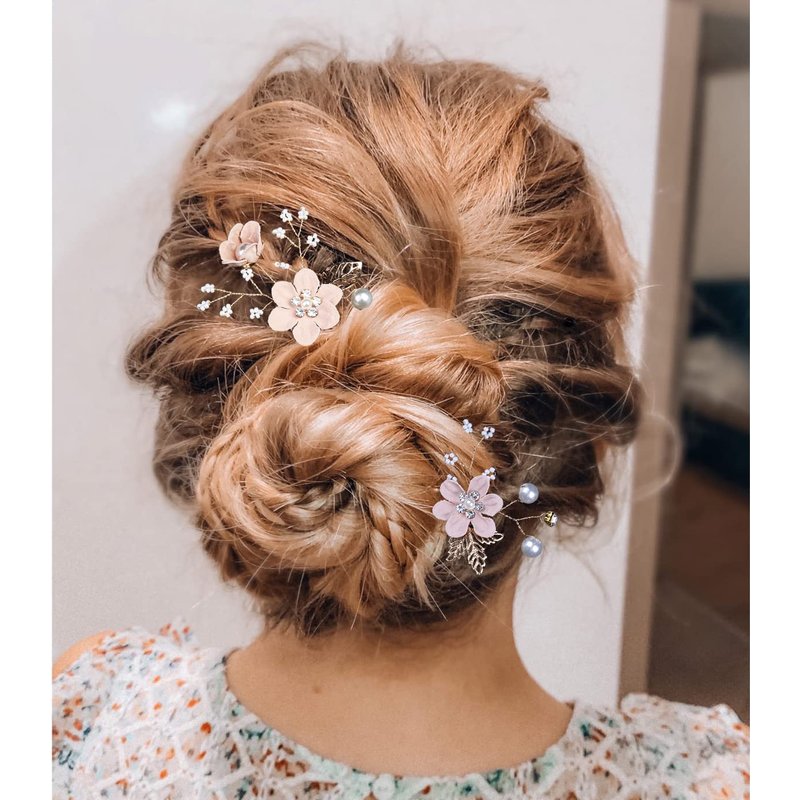 - Exquisite Pattern: These wedding hair pins are unique in design, concise and elegant, feature a romantic design, its flower like design can be perfectly match with wedding dress or some special daily outfits; The romantic rhinestones, pearl and aesthetic fake petal creates a subtle and feminine temperament for your bridal hairstyle. Let the flower hair pins blossom on your hair, give you a unforgettable moment.