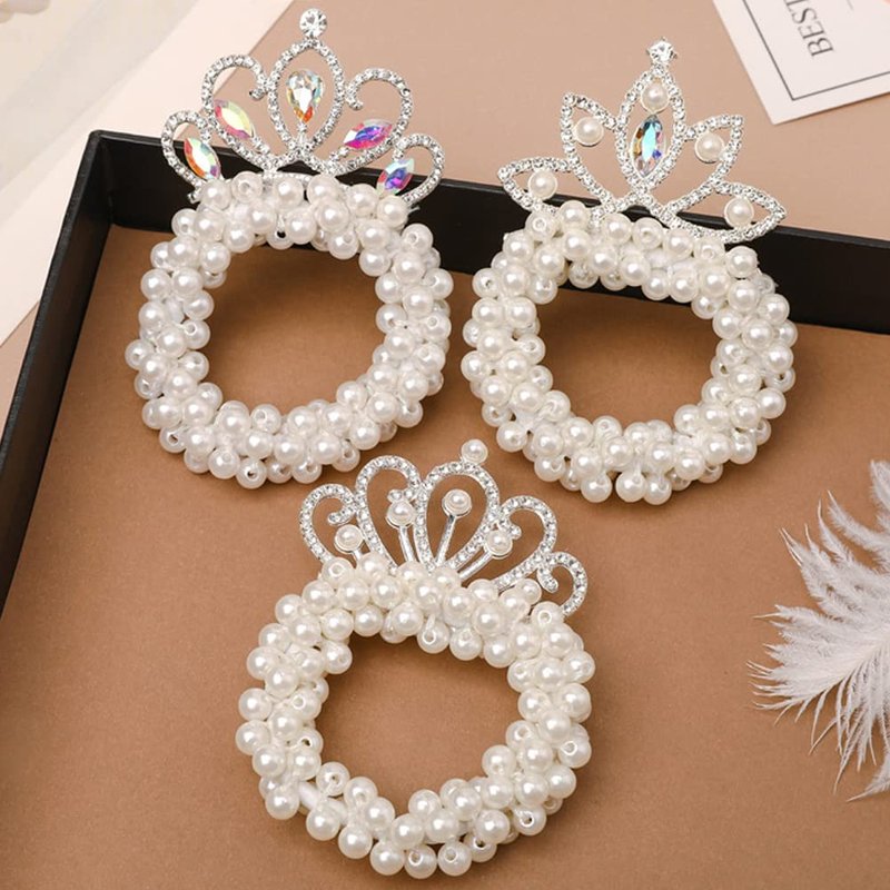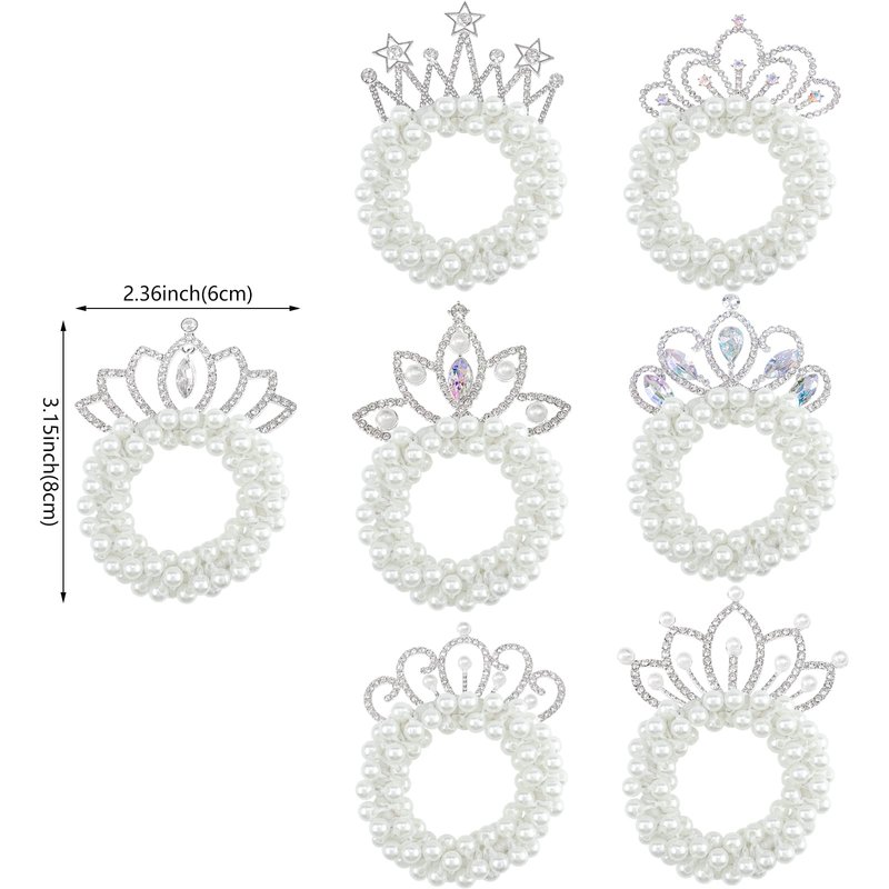 7 Pcs Pearl Crown Hair Ties White Pearl Beads Hair Scrunchies Elastic Hair Bands Beaded Ponytail Holder Crystal Princess Hair Rope Ties Accessories for Women Girls