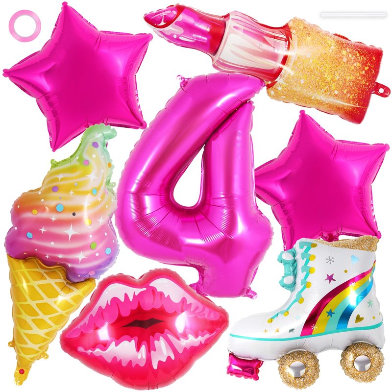 - Package includes: You will receive a pink girl balloon set, which includes 1 pc ice cream shape balloon, 1 pc lipstick shape balloon, 1 pc roller skate shape balloon, 1 pc sexy lip shape balloon, 1 pc digital number balloon, 2 pc star balloons, a roll of 5m/16.4ft rose red ribbon and straw. The quantity is sufficient and the styles are diverse to meet your party decoration needs, leaving an unforgettable impression