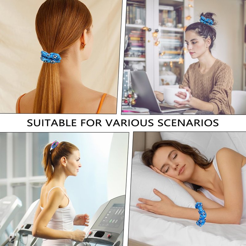 - Wide Occasion:Varieties of colors can satisfy your daily make up and easy to DIY your own hairstyle, make you look more charming. Great for buns, ponytails, braids or pigtails. These soccer scrunchies look cute on school performance; Suitable for various birthday parties, Proms, Halloween Decorations, Christmas gifts, Thanksgiving, New Year’s Eve or every-day wearing -- all for the extra fun of your life! Then can make your hair styling more eye-catching.