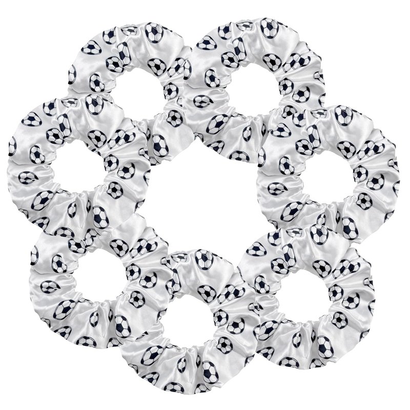 7 Pcs Shiny Soccer Hair Scrunchies Cheer Soccer Uniforms Scrunchie School Performance/Sports/Practice/Party/Gymnastics Scrunchie Ponytail Holder Wrist for Girls Cosplay Show (White)