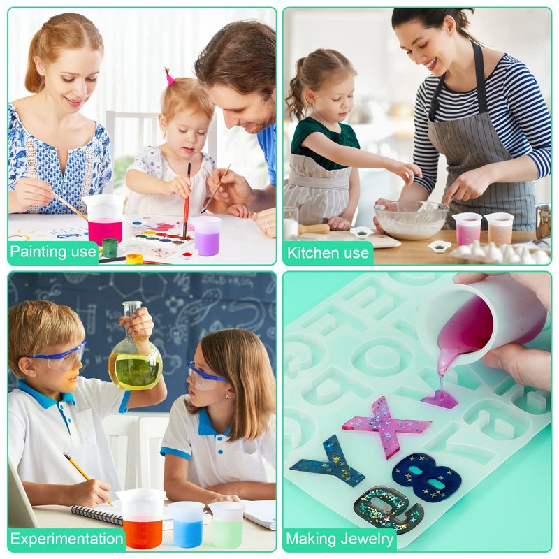 - 【CUPS EASY TO CLEAN】All our measuring cups are made of silicone, smooth surface, non-stick and flexible, easy to clean. Suitable for measuring and mixing epoxy resin, acrylic paint, glue, various liquids.