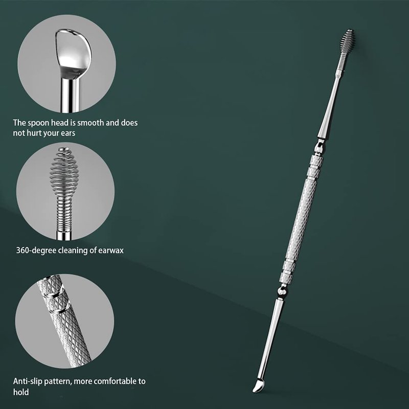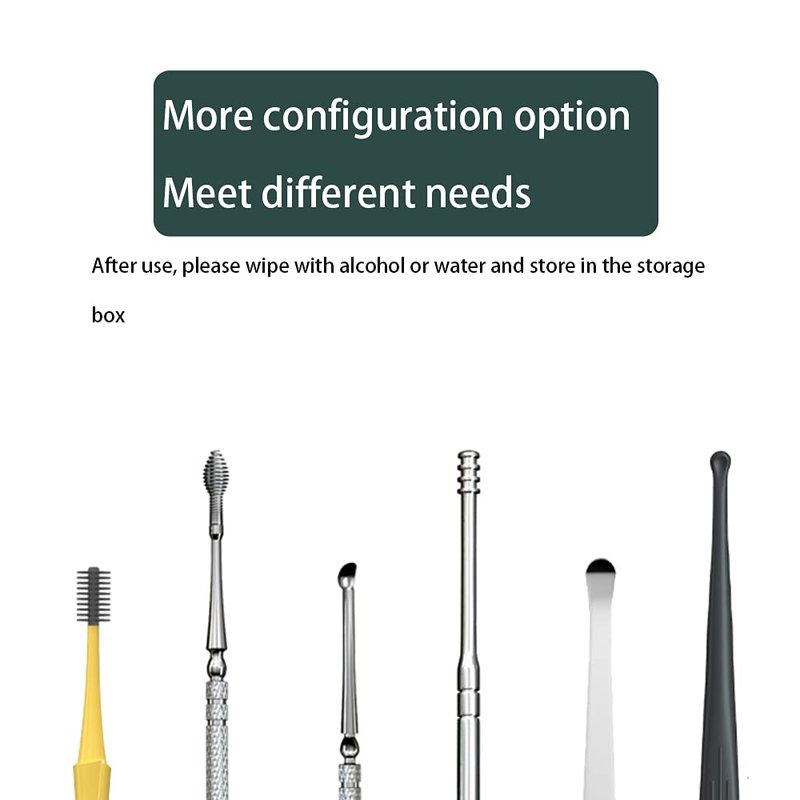 - FULL-FEATURED: 7-in-1 Ear Pick Tools, 1 *Stainless steel double-headed ear pick, 1 *Silicone double-headed ear pick, 1 *Stainless steel ear pick, 1 *Ear wall cleaning ear pick, 2 *Waxy Ear Pick, with 1 Storage box and 1 Clean brush.