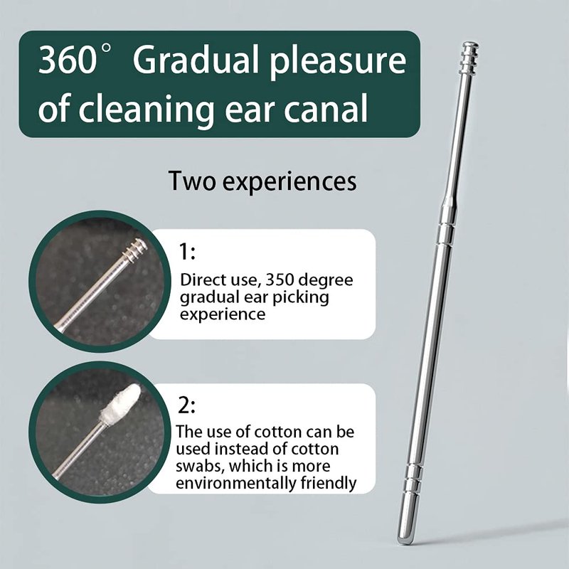 - ERGONOMIC DESIGN: The ear canal cleaning kit has been upgraded to be more in line with the human ear canal, with unique spring and spiral design tools that can effectively relieve ear itching and massage the ear canal while cleaning the ear canal in 360°. Non-slip ergonomic design provides a safe set for your family.
