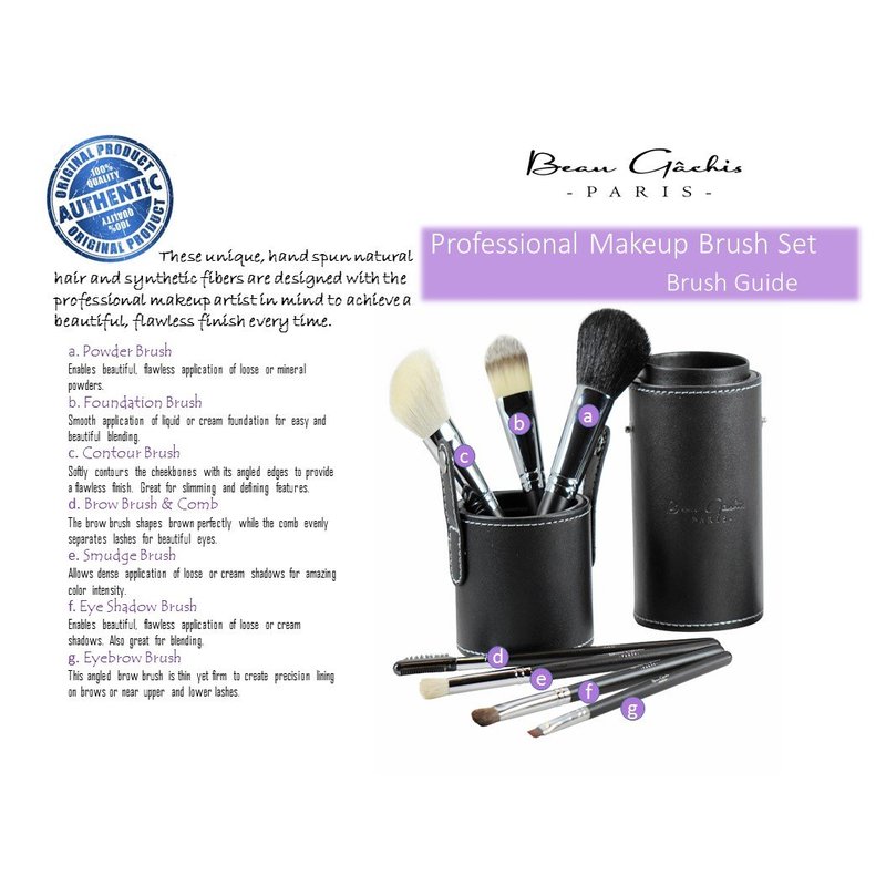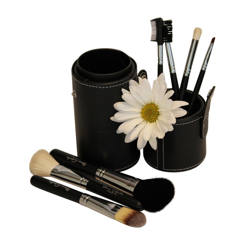 This Beau Gâchis Paris 7 Pcs Makeup Brush Set provides you with a complete set of brushes for beautiful and easy makeup applications. Made from high quality synthetic hair, durable aluminum ferrules, and natural wood matt black handles, these brushes are created with the makeup artist in mind. The beautiful 100% leather designer storage case included with the 7 piece set is convenient for travel or as an eye catching display. Because we use only the finest materials, these brushes apply makeup like the pros and are really easy to clean and maintain. We recommend cleaning your brushes prior to the first use and then once a week depending on how much you use them by using warm water and a gentle shampoo. Also included are plastic brush guards which assist in keeping the shape of the brush hairs after cleaning or when not in use. Beau Gâchis Cosmetics is committed to providing you with the highest level of customer service and quality beauty products at the lowest prices.