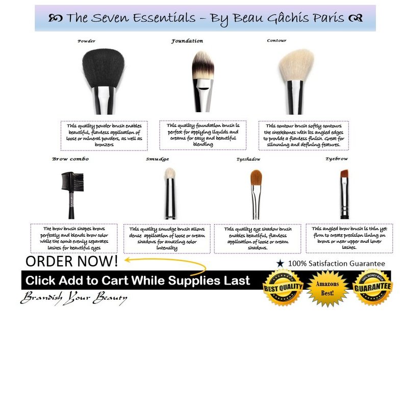 7 Piece Makeup Brush Set By Beau Gachis Cosmetics
