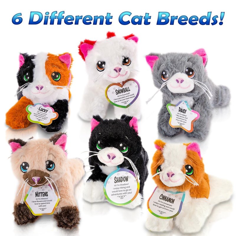 - EXPAND THEIR IMAGINATION: You won’t just be getting the cutest cat plush toy set. We’ve also included 6 personality tags complete with adorable names and an imagination-sparking bio.