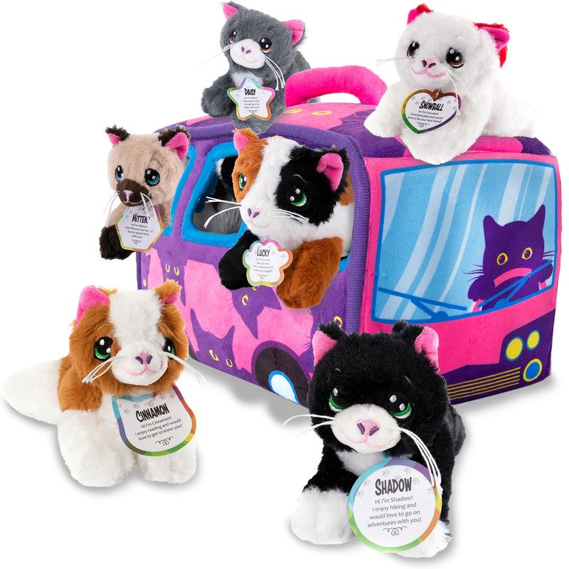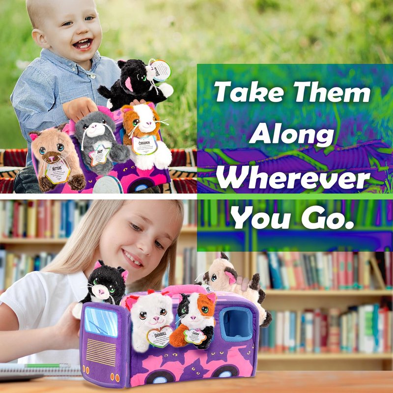 - GREAT FOR TRAVEL: A 11” (L) x 7” (W) plush carrier fits all 6 stuffed cat toys to take the fun on the road. Looking for travel toys for kids? Road trip toys girls won’t get enough of? You’ve found them.