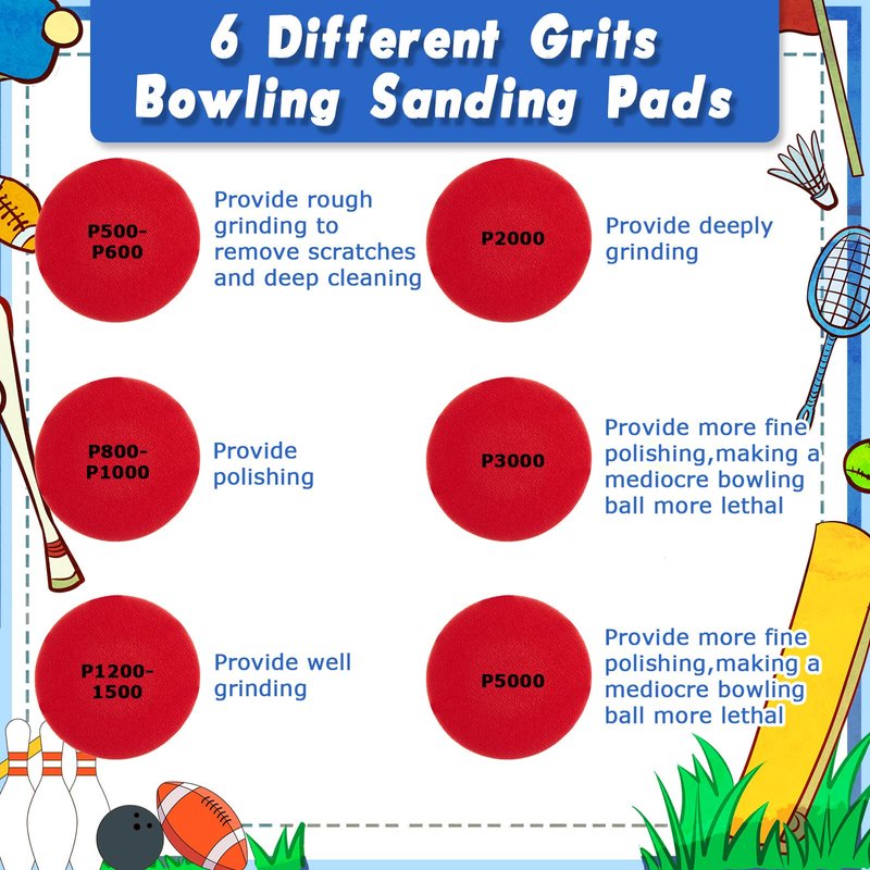 - What You Will Receive: the package contains 6 pieces of bowling sanding pads in 6 kinds of grits, and 1 piece of bowling ball holder, sufficient quantity and styles to meet your cleaning needs and displaying requirements