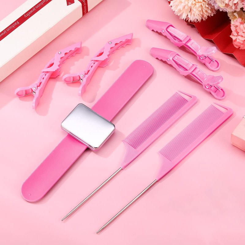 Features: Wide application: You can use these pink rat tail combs and sectioning alligator hair clips to design different hairstyles for yourself, children and family members in your daily life, and these items are also ideal for hair salons. Easy to use: Our pink pin tail combs and sectioning hair clips are light in weight and small in size, which are easy to carry and store, and do not occupy too much space. The magnetic pin bracelet will be easy for you to use when sewing and making jewelry. Specifications: Main material of pincushion: silicone Material of combs and hair clips: plastic, stainless steel Main color: pink Size of wristband: approx. 9.44 x 2.36 inch Quality: 7 pieces Package includes: 1 x Magnetic pincushion wristband 2 x Rat tail combs 4 x Sectioning alligator hair clips Note: Manual measurement, please allow slight errors on size. The color may exist slight difference due to different screen displays. Pointed parts included, please keep away from kids.