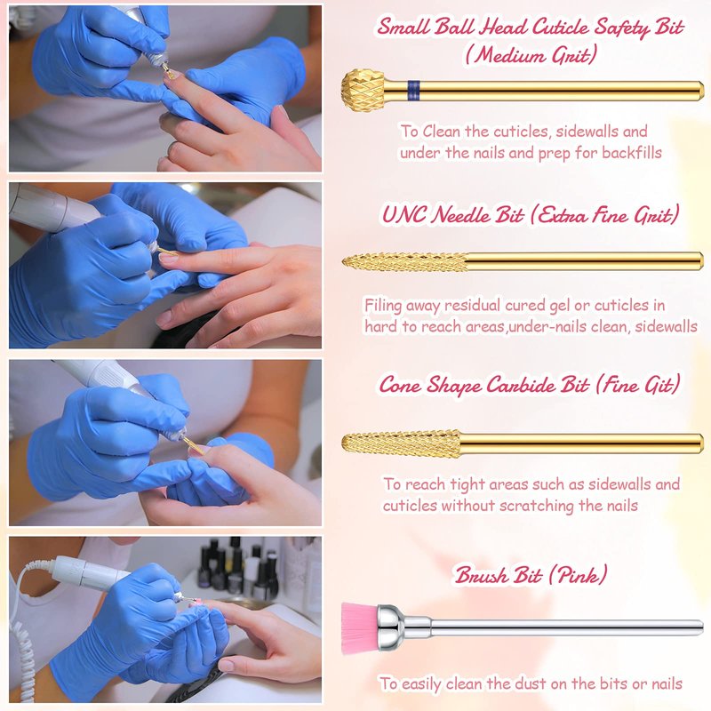 - Multi-function: Our Nail Drill Bit Set includes nail drills with different top shapes, which can meet the needs of sanding, polishing, nail cleaning and care, shortening the nail edge and removing dead skin. It is suitable for natural nails and artificial nails. The good choice for beauty salons and families