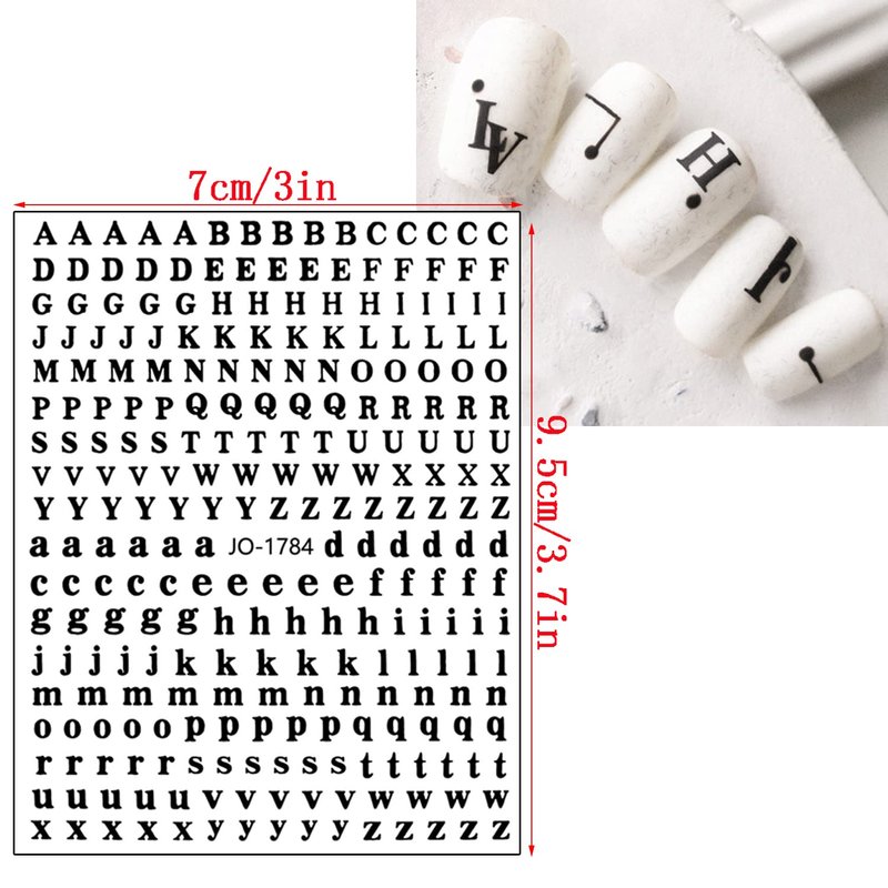 - 【Quantity】You will get 7 sheets black geometry nail art adhesive sticker, each paper measure 3.7 x 3 inches(9.5 x 7 cm). Contains a variety of geometry patterns: love heart, 26 alphabet, 0-9 numbers, five-pointed stars, four-pointed stars, eyes, butterflies. These nail stickers are perfect for matching other nail art.